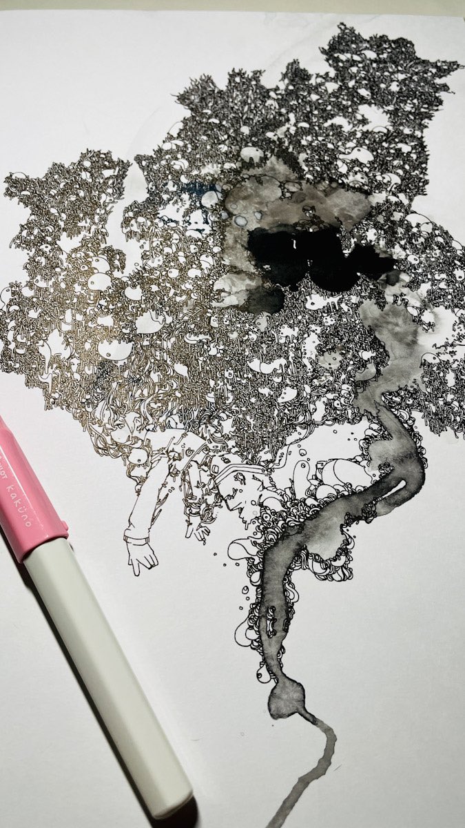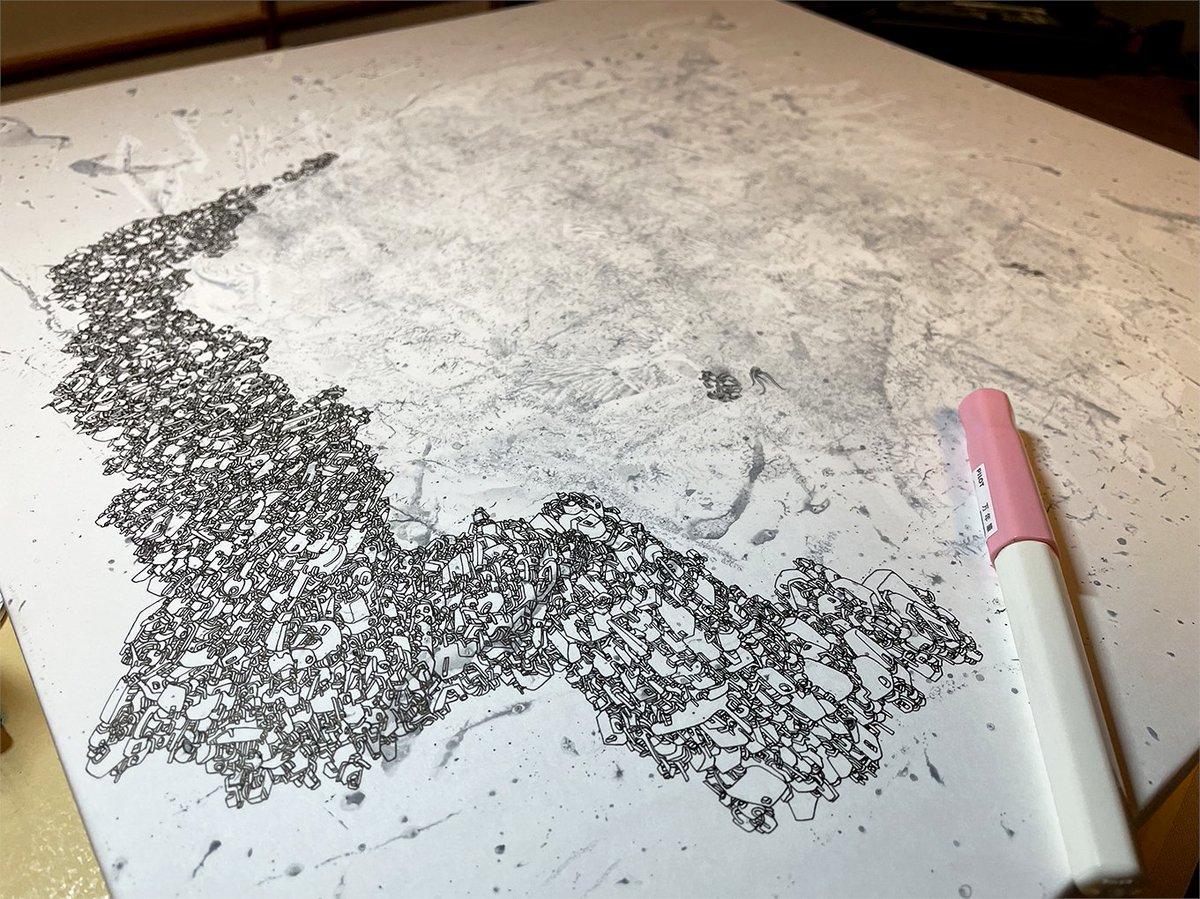 またぶちまけながらごちゃごちゃしてます #ペン画 #アナログ絵