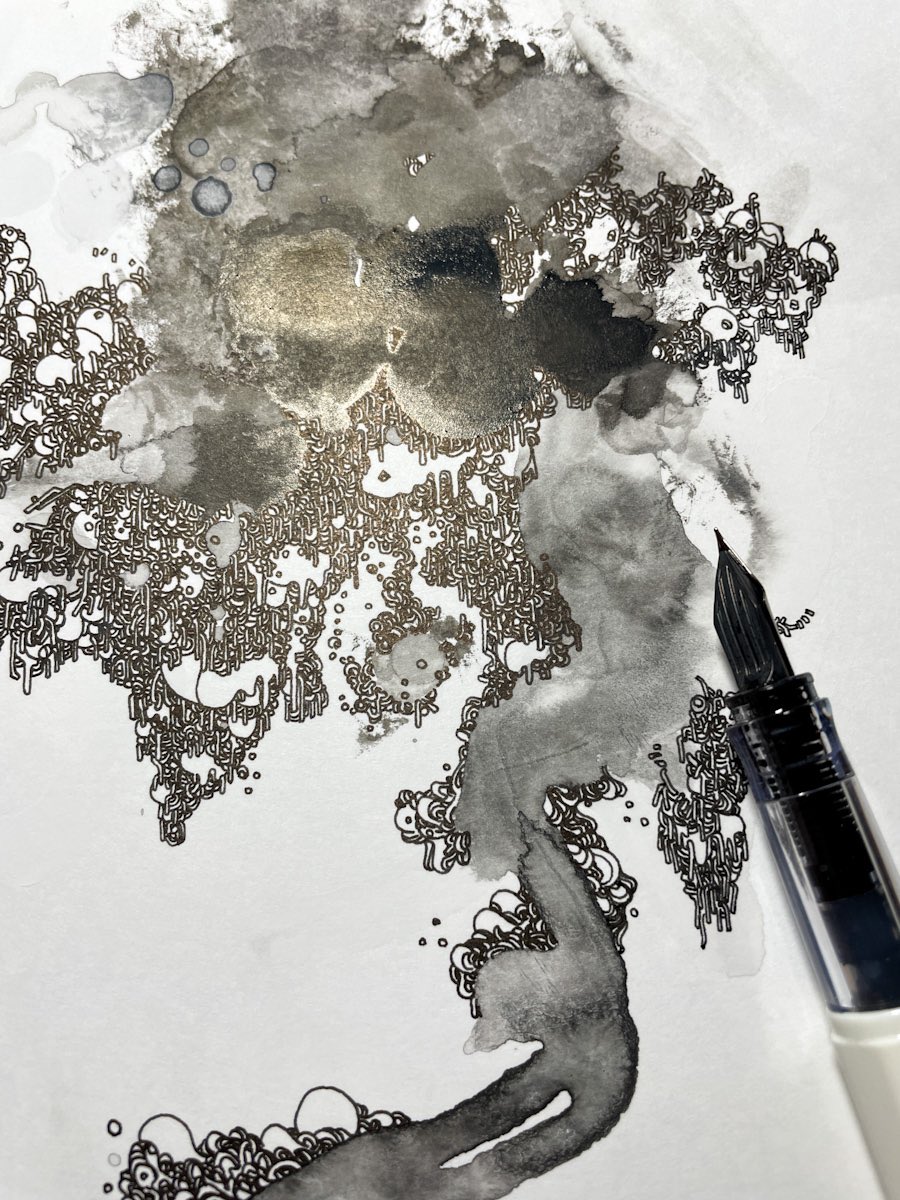 混ぜて垂らして #ペン画 #万年筆