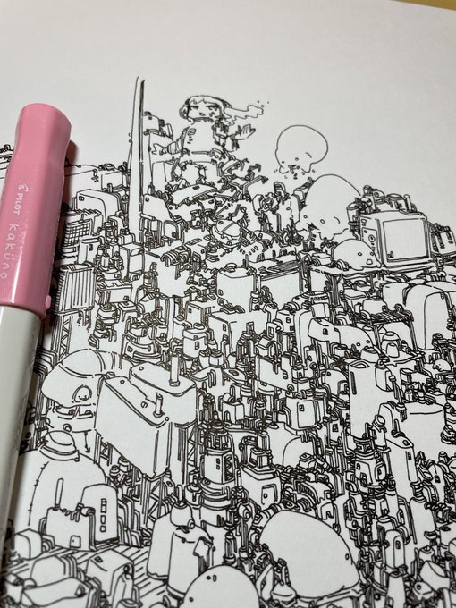 1 5 B2サイズ でかい #ペン画 #万年筆 23/05/26 18:14