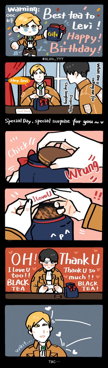 BEST BLACK TEA TO BEST LEVI 有情節參考的搞笑條漫👇my pixiv pixiv.net/artworks/95010… #エルリのリヴァイ生誕祭2021 #eruri #エルリ