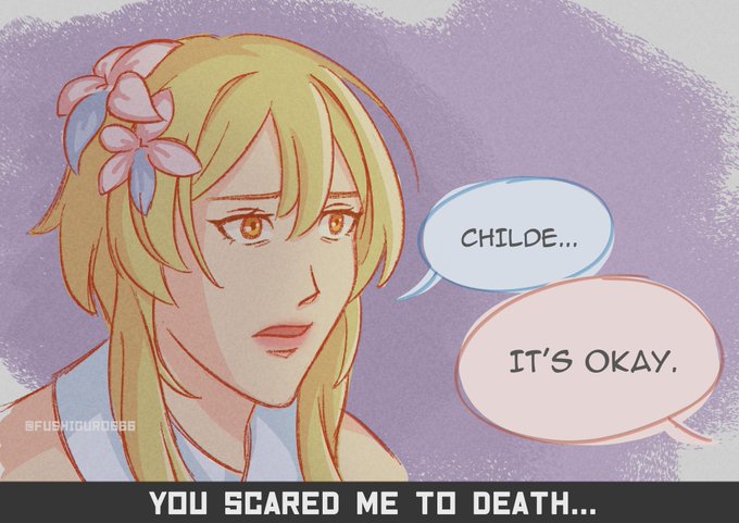 9 77 chilumi // "don't worry about me too much :)" cw: fake blood and bruises #chilumi #lumichi #lumine #childe #tartaglia #genshinimpact #genshinimpactfanart #genshinfanart 22/02/19 17:37