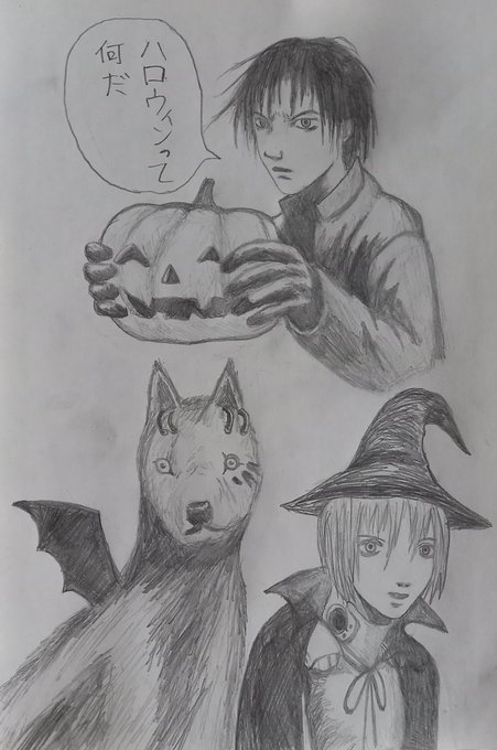 20 51 ハロウィンって何だ #鉛筆 #イラスト #アナログ #BLAME! #ブラム #霧亥 #犬女 20/10/31 21:27