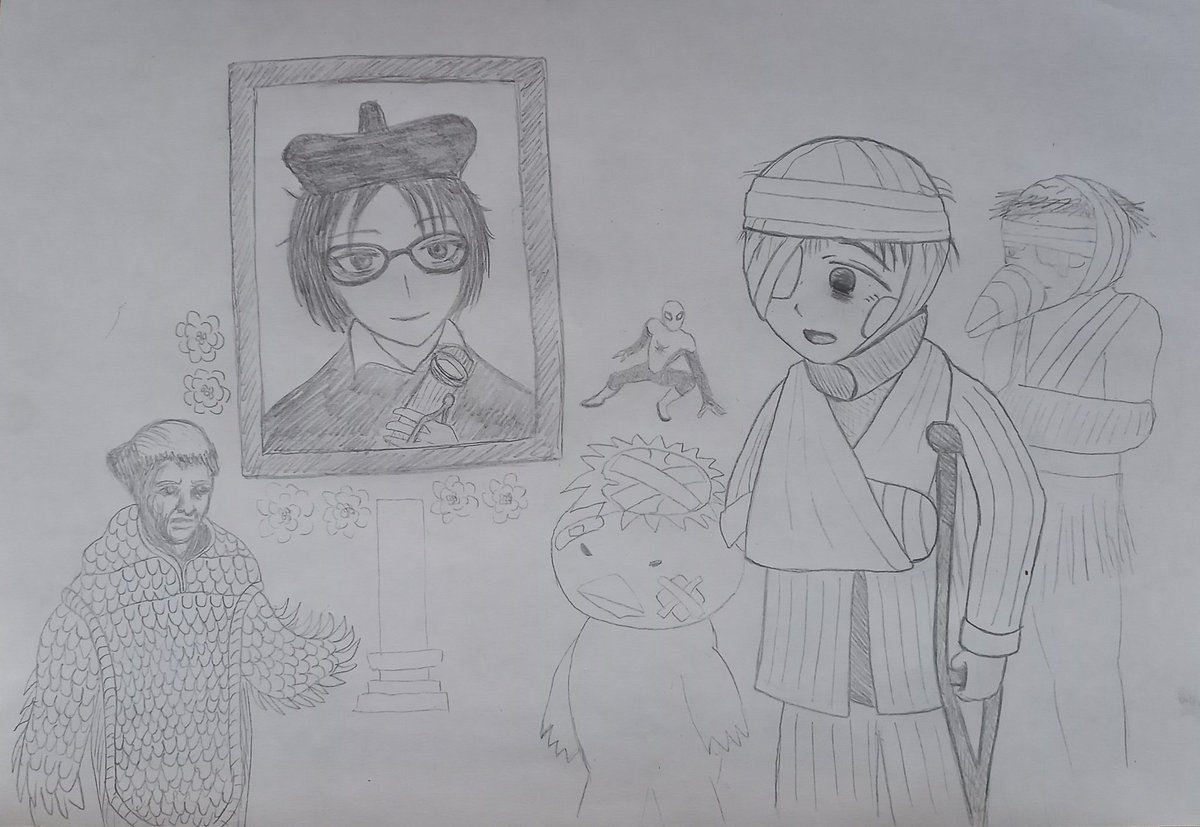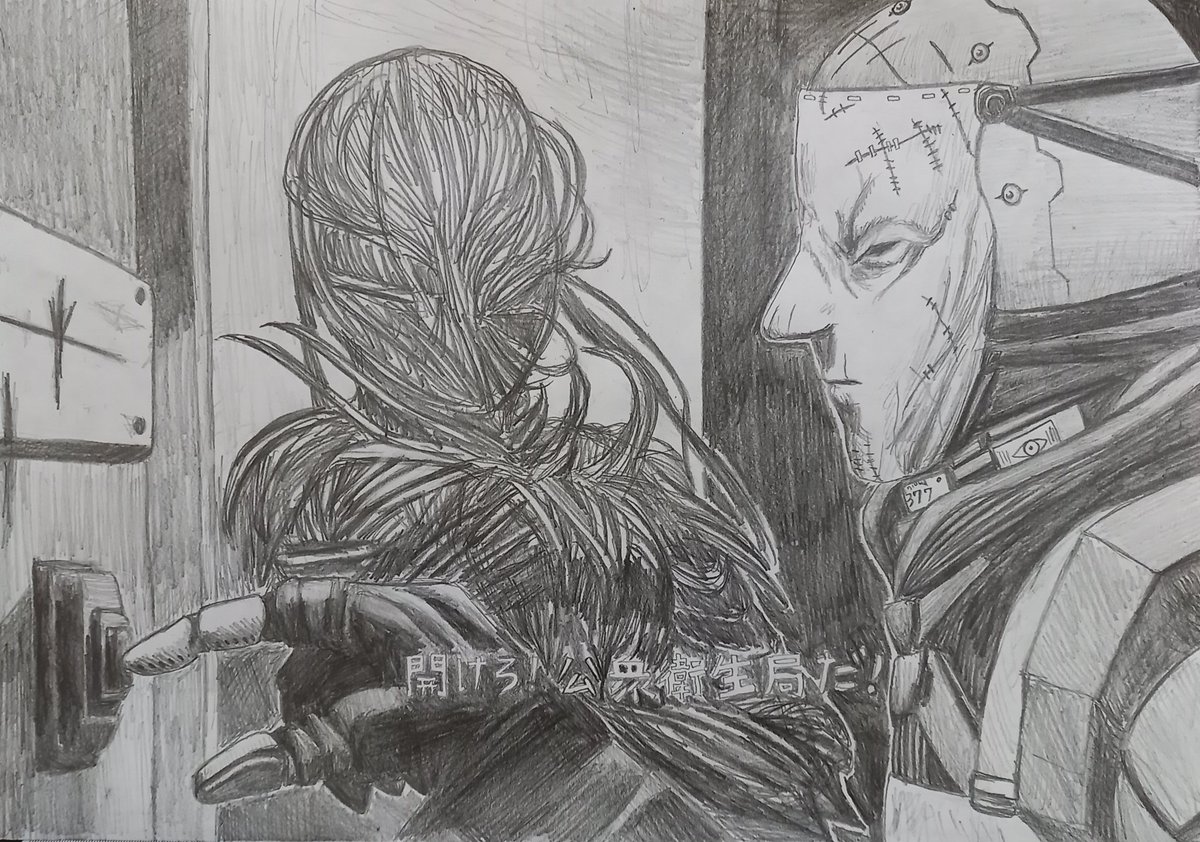 開けろ!公衆衛生局だ! #鉛筆 #イラスト #アナログ #バイオメガ #BIOMEGA #巡回査察員