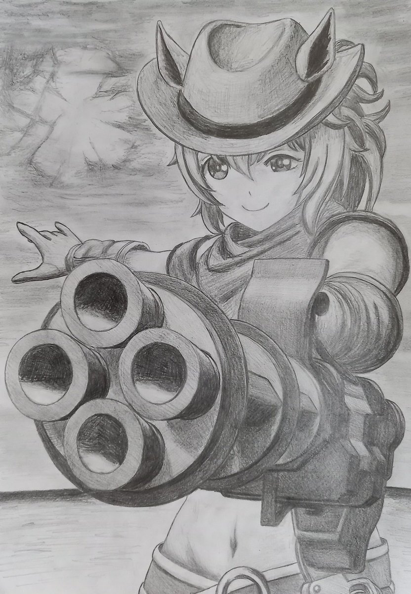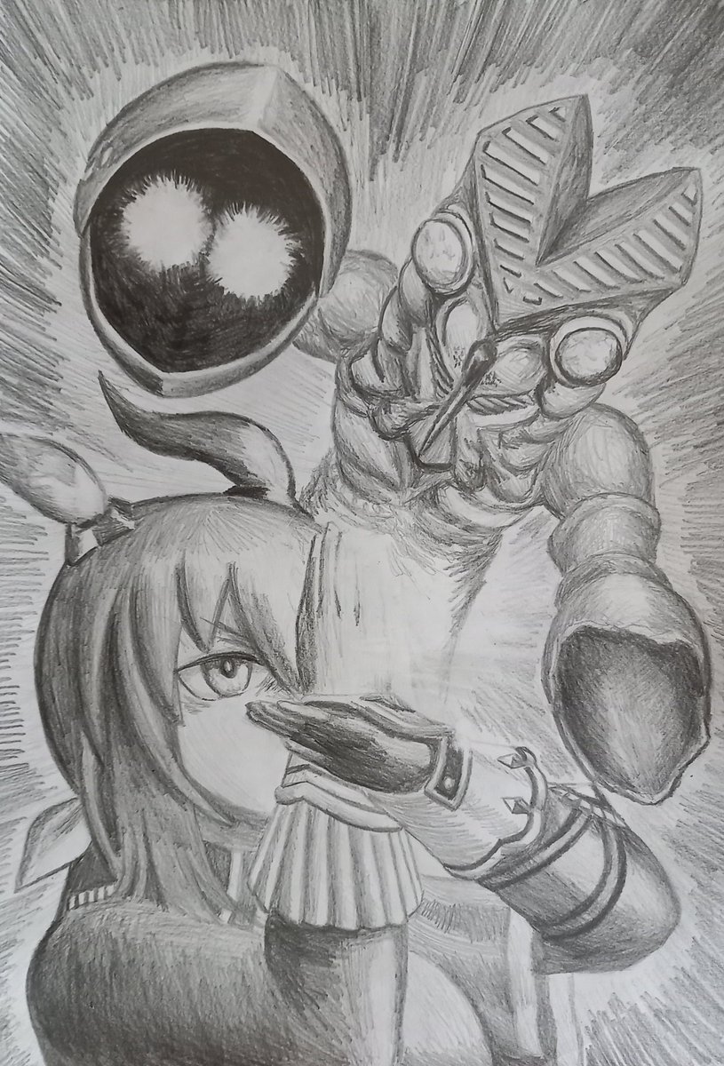 丑年なので牛柄ビキニのダフィネルちゃん #鉛筆 #イラスト #アナログ #BLAME! #ブラム #珪素生物 #ダフィネ・ル・リンベガ