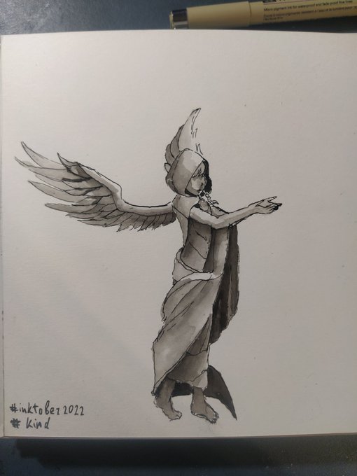 В этом году этот манул рисует #Inktober #inktober2022 по возможности тушью и по #GenshinImpact Это вот стервятник из пустыни #inktober2022day1