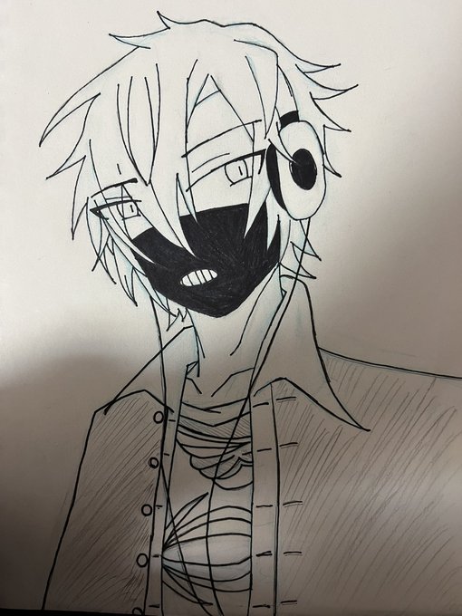 授業中に描いた落描きサティ✝️どうしてこの表情なったかは個人に任せるぜ笑 #コンパス #コンパスお絵描き