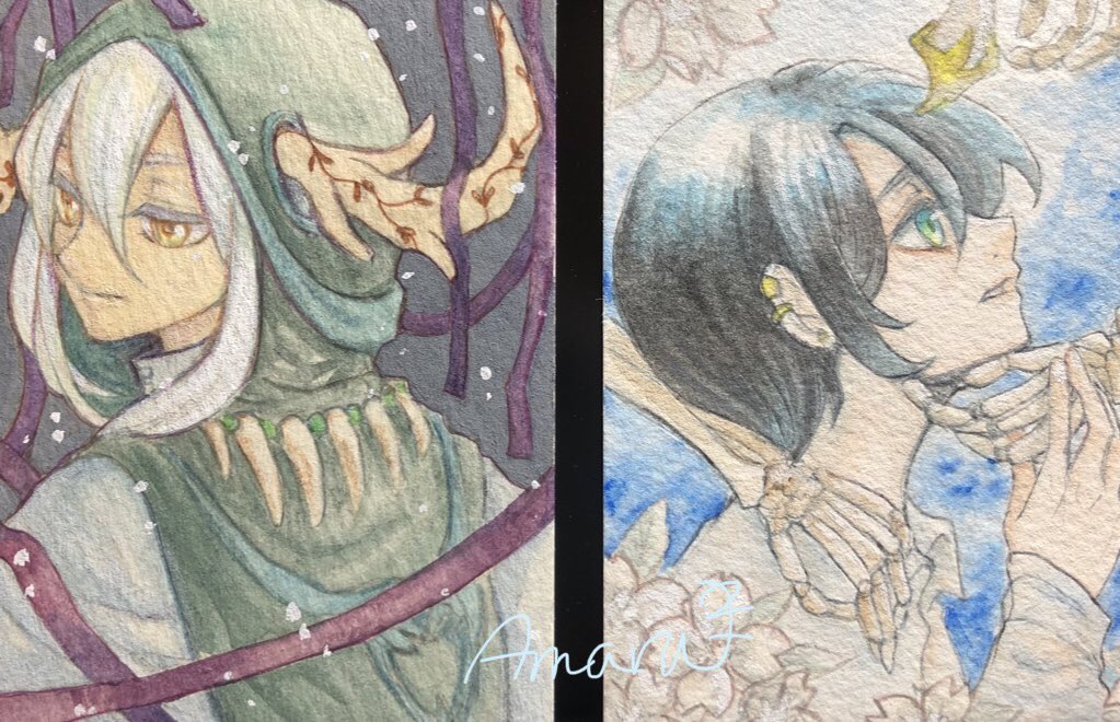 #アナログ絵 たびたびトレンド入りしてるワードなので使わせて頂く 透明水彩人気なのかな。わたしも好きですけど
