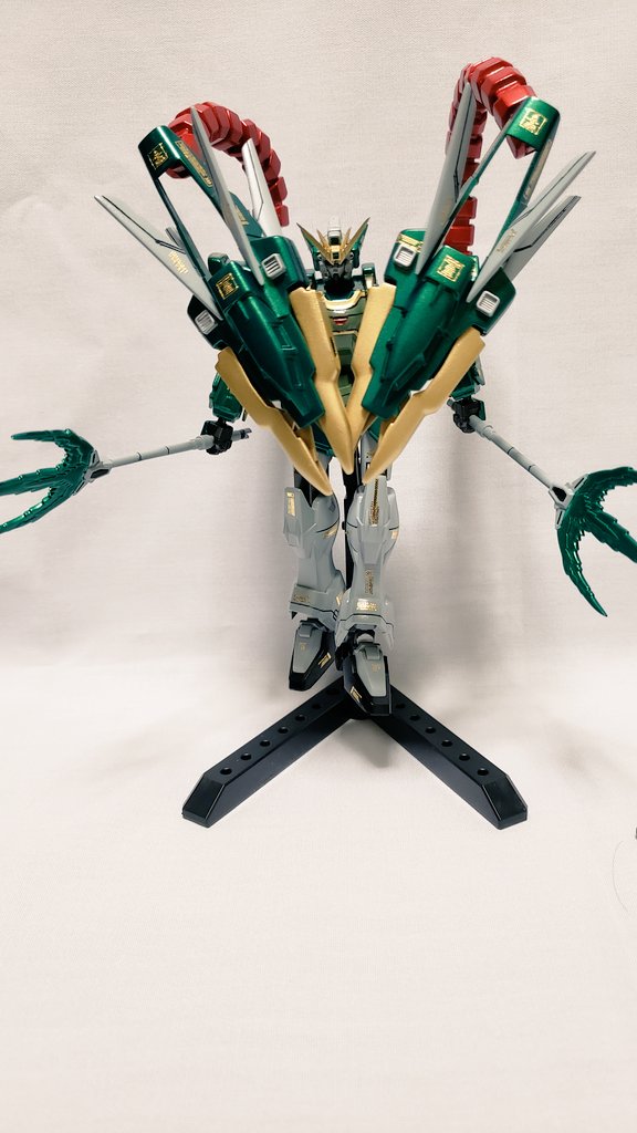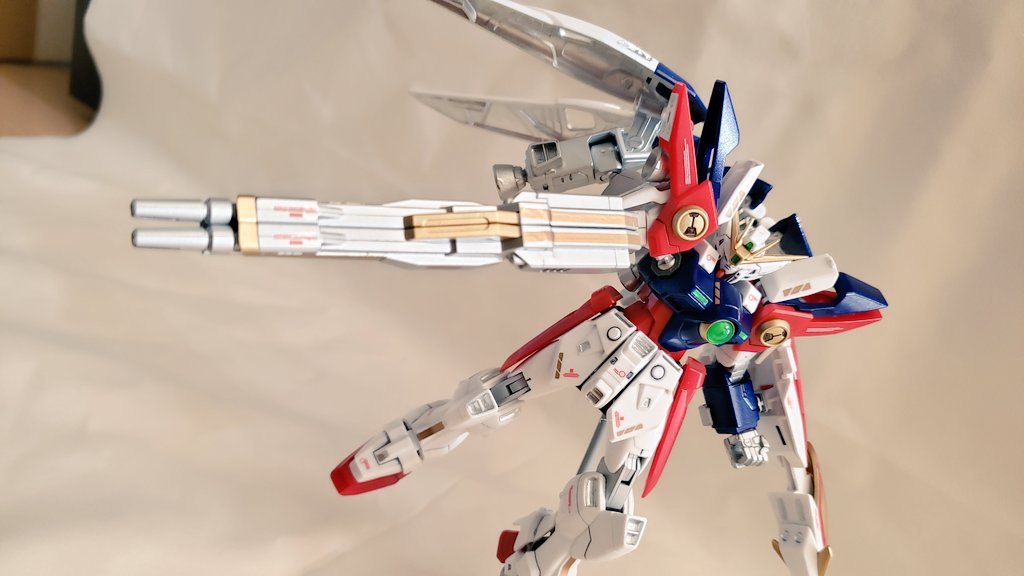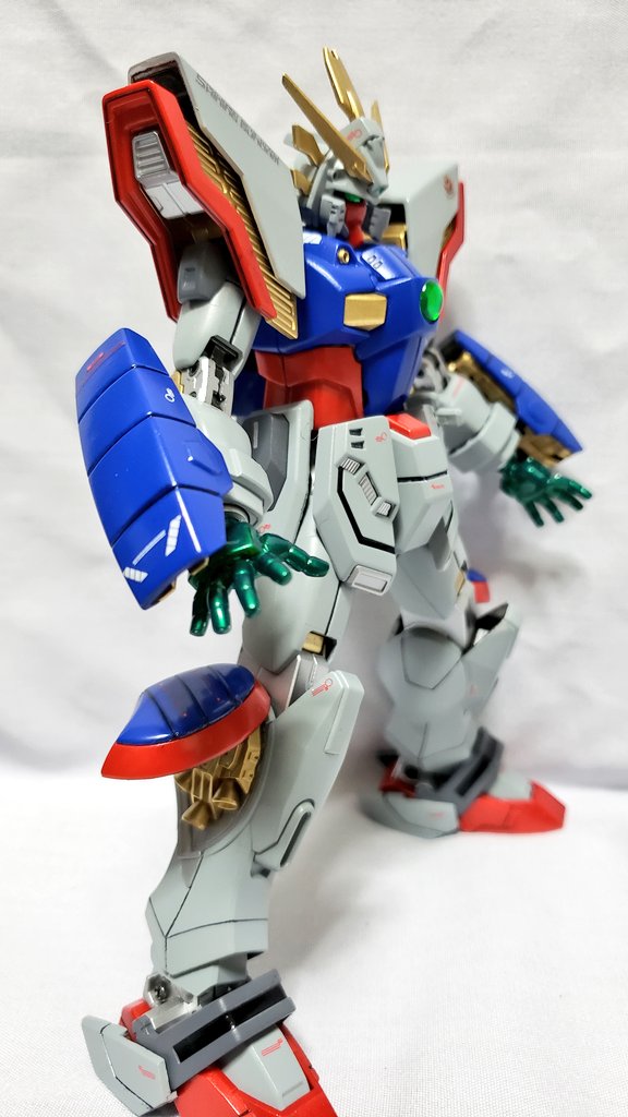 #ガンプラ #Gガンダム #ガンプラ好きな人と繋がりたい MGシャイニングガンダム完成しました。 フレームはメタリック系で塗装し、首は3mm延長。 ノーマル時のフェイスパーツは薄く削り調整しました。