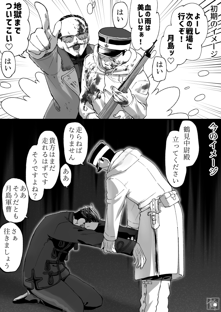 ゴーiルiデiンiカiムiイ 鶴i見中i尉×月i島軍i曹 鶴月オンリーよろしくお願いします!🍡🍙👏👏 #ひらいて赤ブー