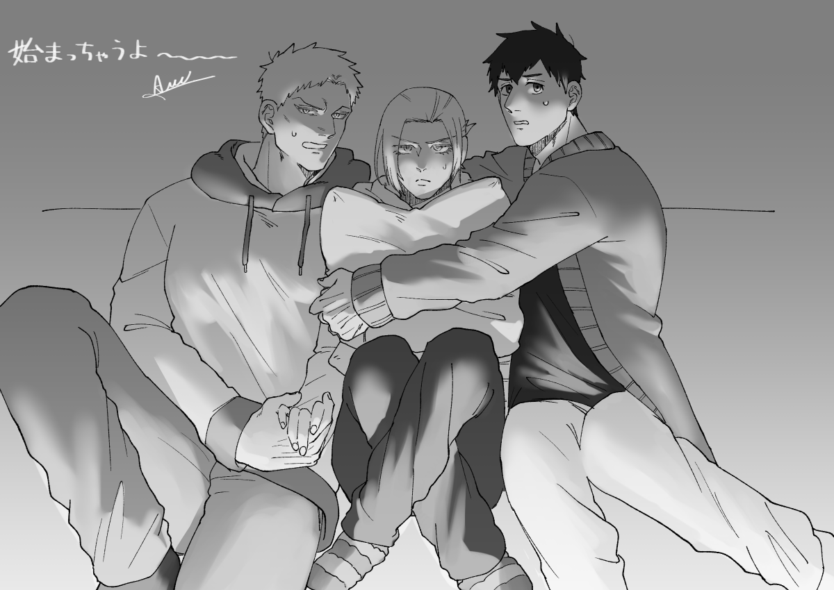 心を落ち着かせるために同郷トリオを描きました。誰か手を握っていてくれ~~~
