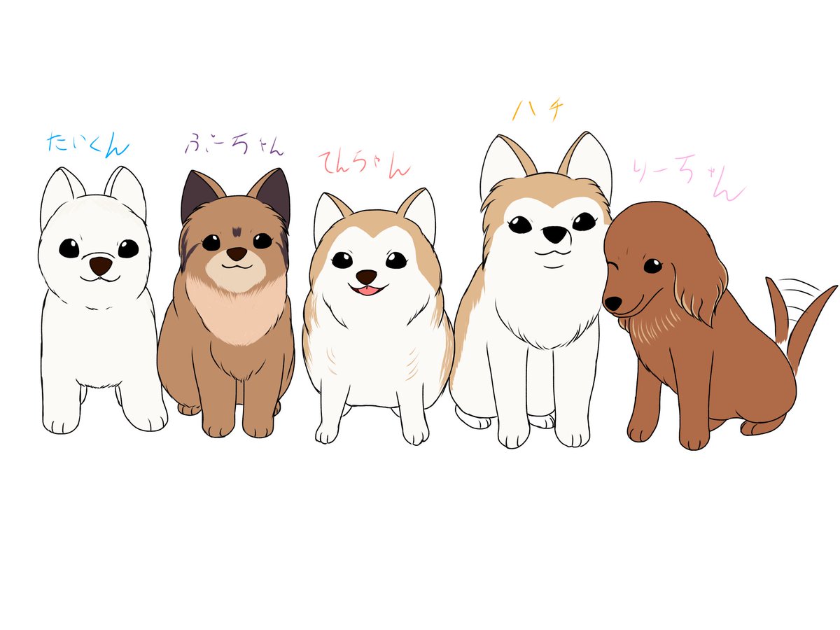#りりバイオレット 愛を込めてりりバイオレット さんのワンちゃん5匹を描きました。 たいくんは虹を橋を渡りましたが、私の中では5匹はいつまでも一緒です。これからも動画を応援します。 youtube.com/channel/UCppWo…