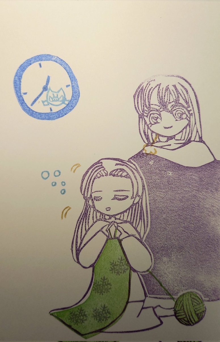#伊アオ版深夜のお絵描き60分一本勝負 お題︰真夜中、覗き見、マフラー 所要時間︰60分 🐗のために、残業で疲れた体でもこっそりマフラー編んじゃう (バレバレだぞ🤭) 優しく毛布で包んでベッドに運んでもらいます🥰 今回も開催ありがとうございます。