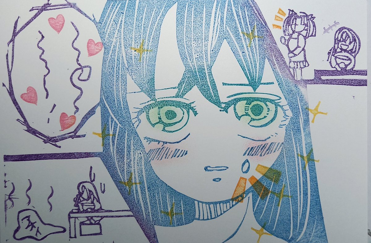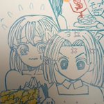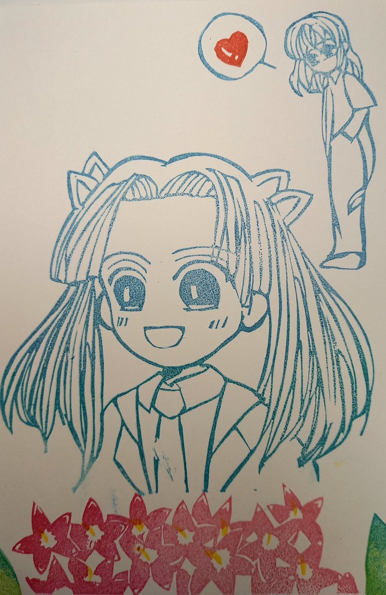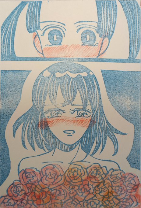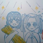 #伊アオ版深夜のお絵描き60分一本勝負 お題:向かい合わせ 所要時間:60分 アオちと見つめ合う至福タイムに、 遠くから「はし○らくぅん💕」とモブ女による邪魔が アオちをそっと視線をそらさせて、 その隙に怒りをあらわに威嚇しまくり😅 シャーペン描き、アイ○ス指塗り 開催ありがとうございます