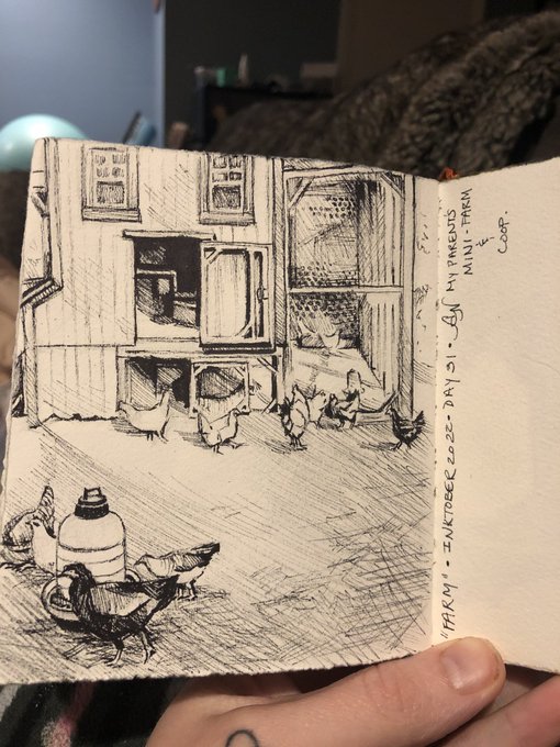 Last of this year! #inktober2022day31 #inktober #inktober2022 #farm @inktober “Farm”… Used a picture of my parent’s mini-farm and their chicken coop.