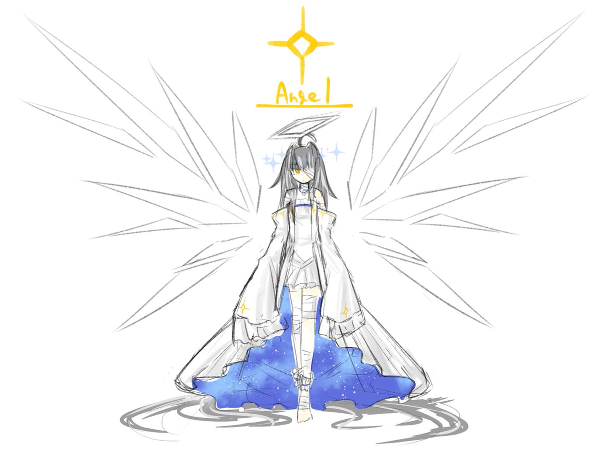 内側宇宙スカート?ドレス?を描きたくなったので天使ちゃんの衣装案ラフで描いてみた #オリジナル