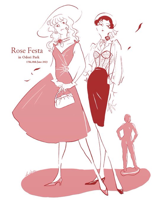 3 7 楽しみ!#大通公園バラフェスタ #バラ #ファッションイラスト #イラスト #私の絵柄が好みって人にフォローされたい 23/06/17 07:56