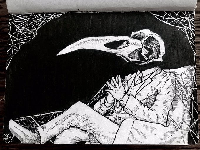 #inktober day eighteen: moon I am a huge fan of the character #MoonKnight, so I am extremely excited about Oscar Isaac playing him in the MCU. Now that said, as important as this bird headed god Khonshu is, I have a feeling,, that this dude is not gonna show up in that show.