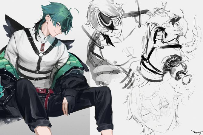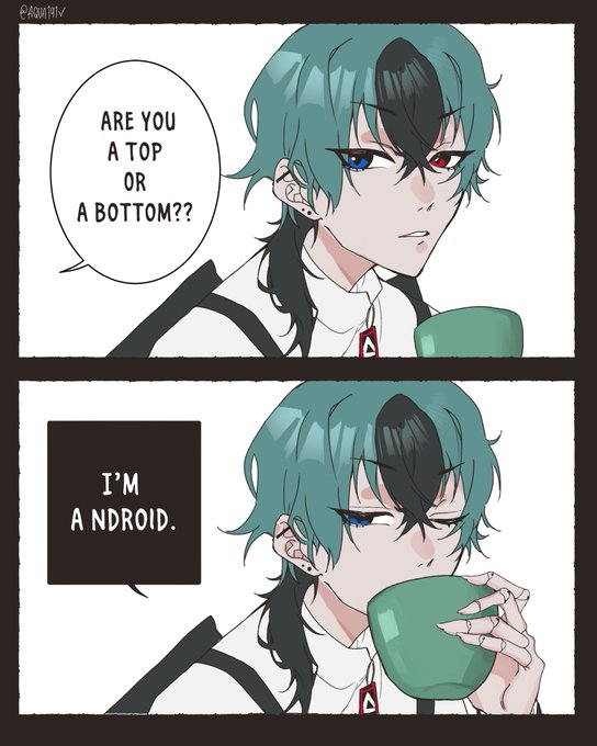 It wasn't your best joke and you're already beating yourself up over it, but he let out a chuckle and smiles fondly at you. 🎨@Xsidia #AQUAVTArt
