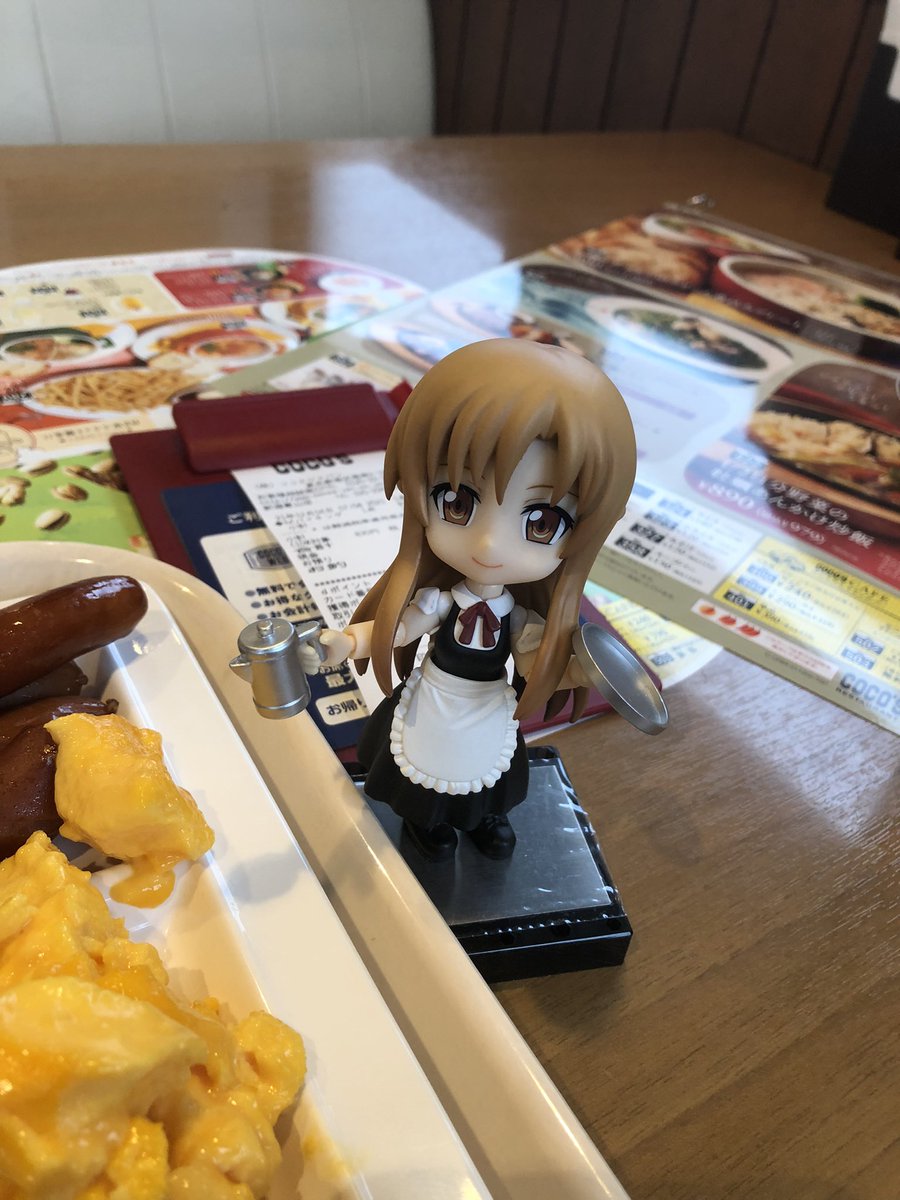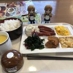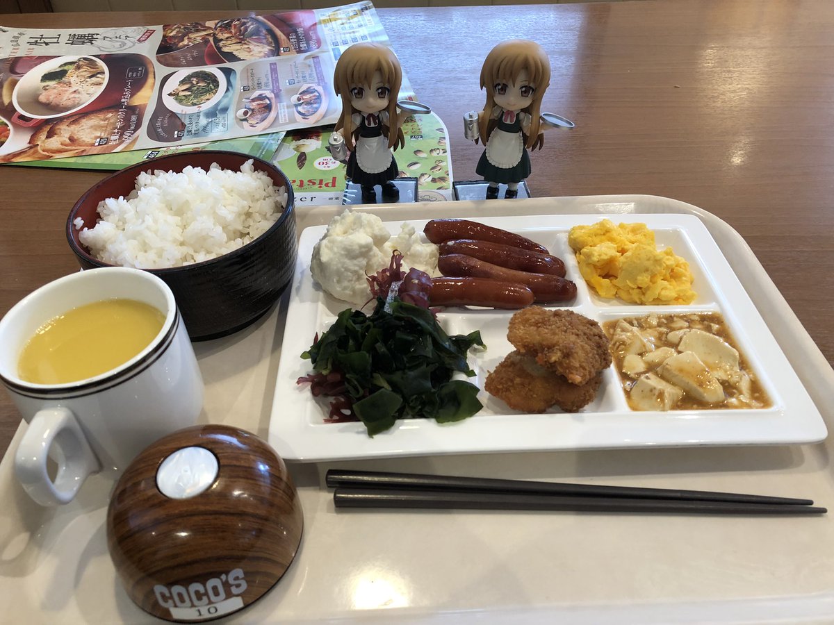 久しぶりに #キューポッシュ とお出かけ、ミクロマン達は車でお留守番です☺️ 寝落ちしたおかげでココスさんの朝食バイキングに来ることができました。ご飯を大盛りにして、その後お代わりしました😋 #キューポッシュとご飯タイム