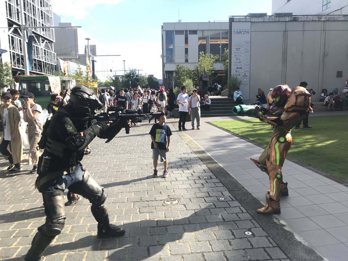 富山市のこすフェスにてバァドゥ(@11Vadu )さんとご一緒させて頂きました。コイツ何時も銃口向けてくるな 小さな子供達からも割と評判が良かったので僕、満足! #富山こすぷれフェスタ #富山こすぷれフェスタ2019