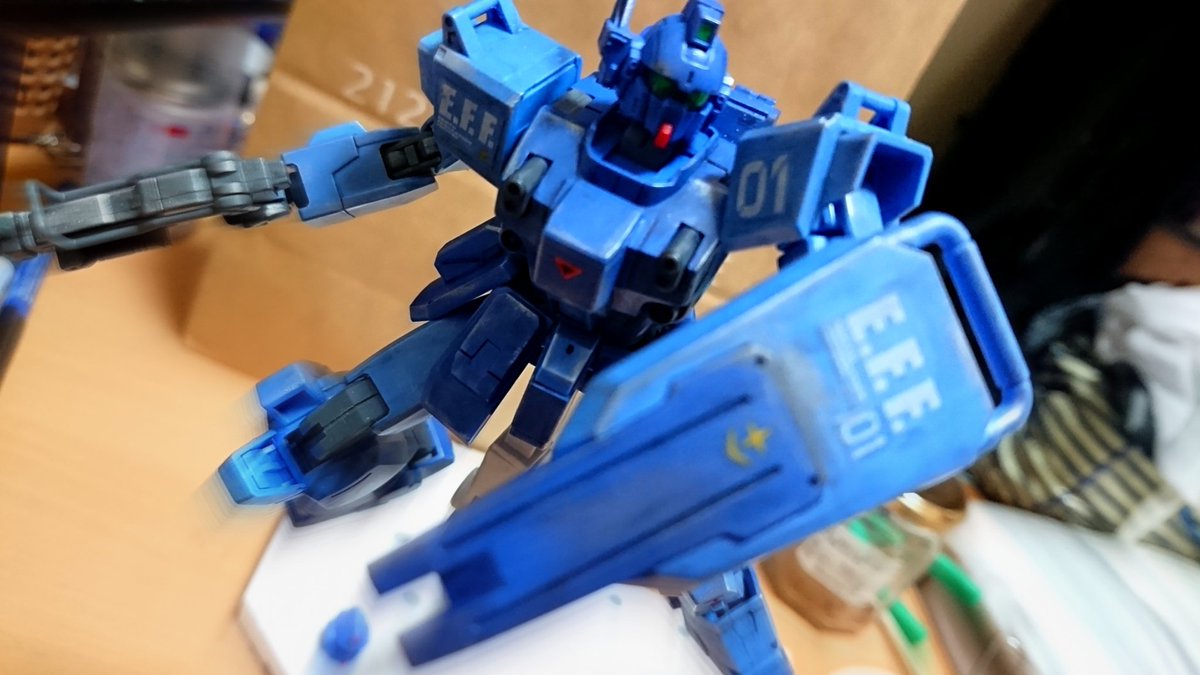 ブルーディスティニー一号機完成! 初めて塗装したけどするとすっごい愛着湧くね、めっちゃかっこよく見える。自粛期間暇な人は是非ガンプラやってみてください #ガンプラ