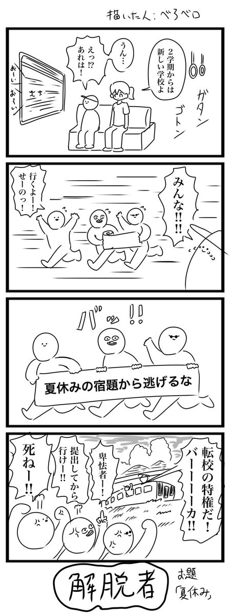今日の4コマです お題「夏休み」 #ヨンバト #4コマ