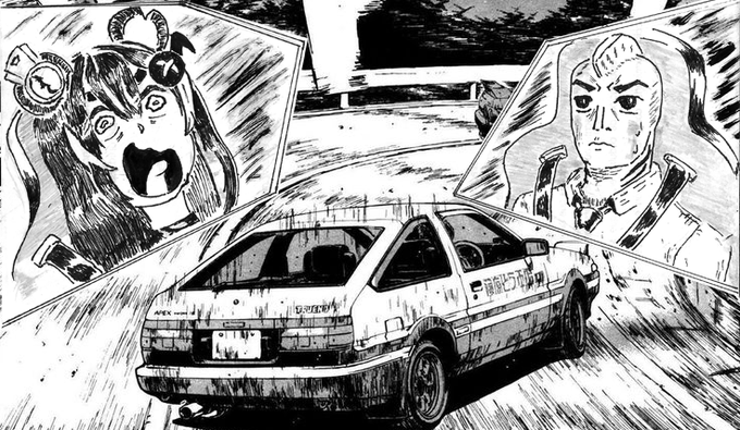 #urukart Uruka checking Sakana's mad driving skillz (Car panel from Initial D)