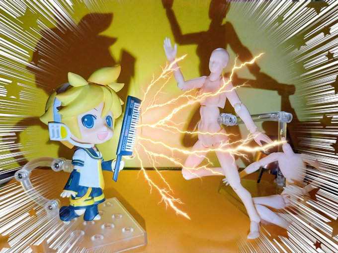 #深夜のねんどろ撮影60分一本勝負 初めてねんどろ撮影やってみました😁 第一段レン君とひまわり畑🌻 #ねんどろいど #鏡音レン #ボカロ好きさんと繋がりたい ちなみに背景はぜるぶの岡のポスターw