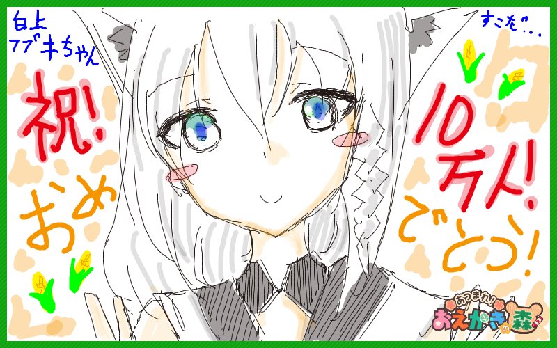 お絵森は参加できなかったけど数十億年ぶりに絵描きました!白上フブキちゃんチャンネル登録者数10万人おめでとうございます🌽🌽🌽 #絵フブキ #すこん部