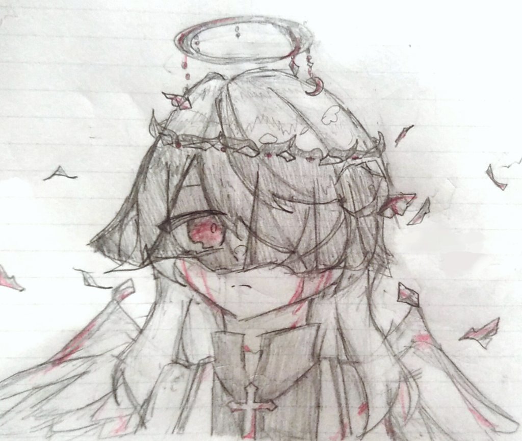 1 6 天使ちゃん描きたくて... 白髪にして...赤い目にしてたら... なんでこんなイラストに... どこで僕は間違えたんだ... #イラスト練習中 #rkgk #アナログイラスト 23/04/28 18:41