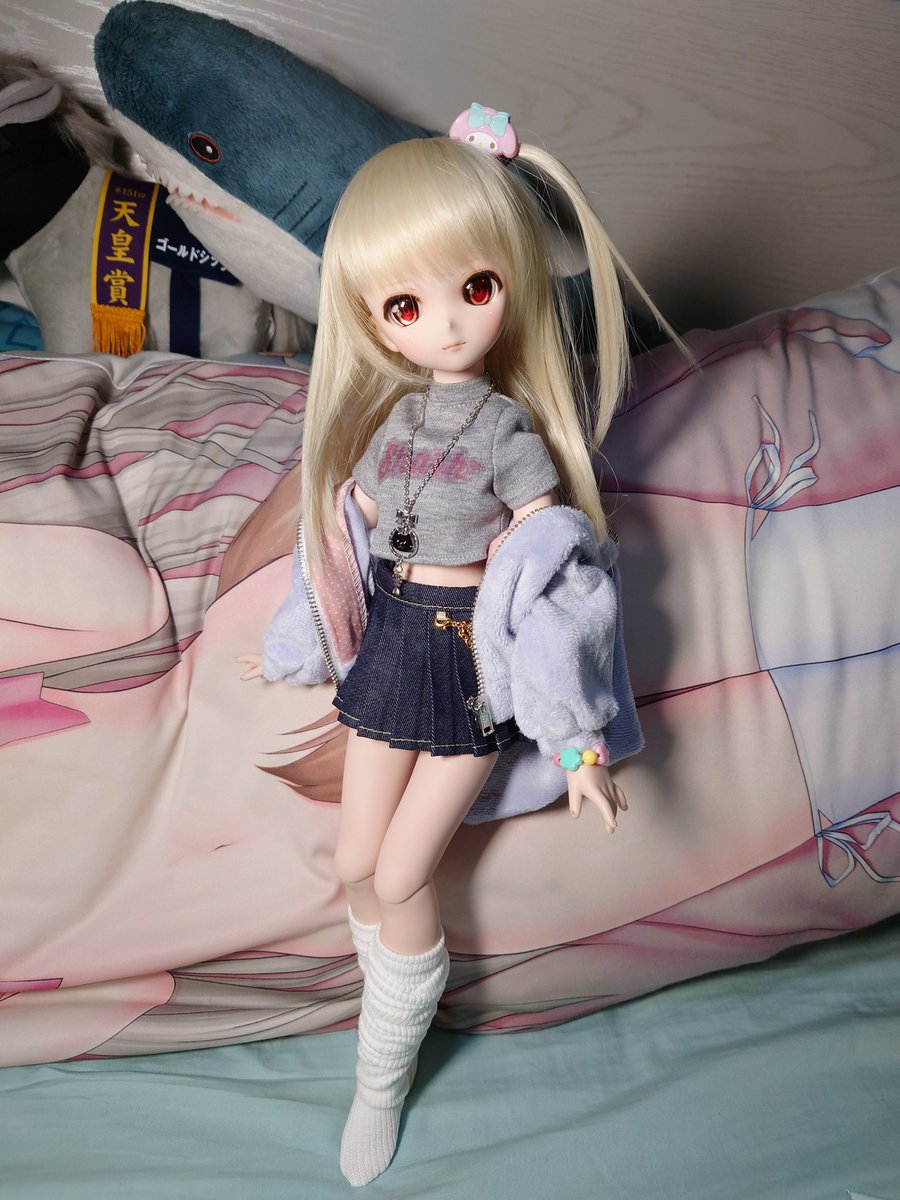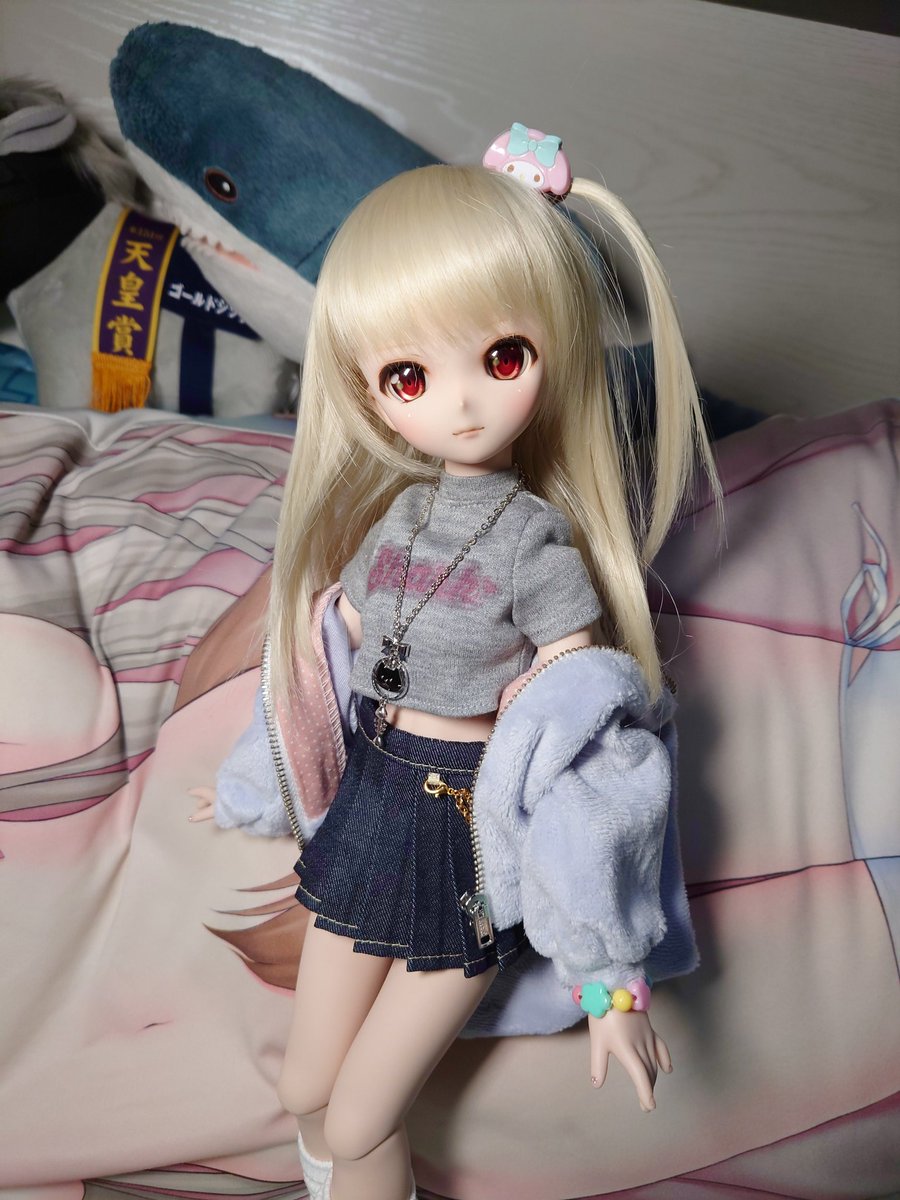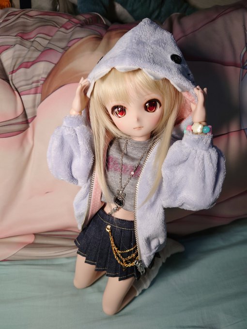 桃ちゃんの新しいお洋服到着しました🦈🍑 #さめっこ #さめどぉる #MDDはいいぞ #うちのこかわいい