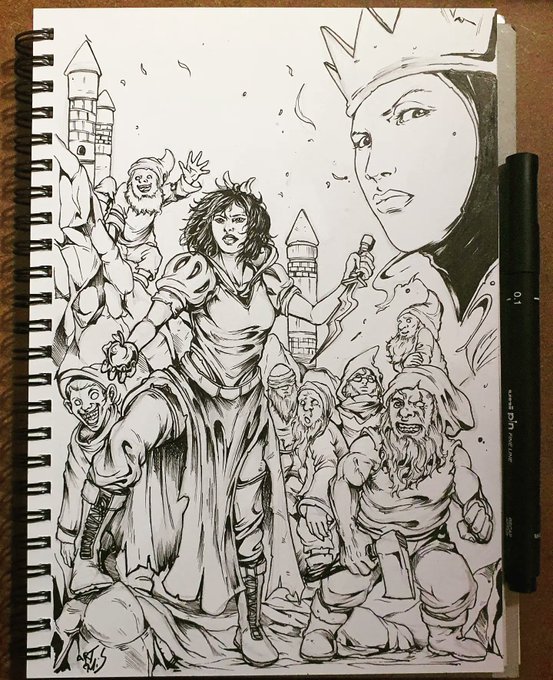 Drawtober 6: Apple 🍎 🍏🍎 Decided to do something Snow White themed😁 #art #artist #artwork #sketchbook #inktober #inktober2021 #drawtober #illustrator #illustration #illustrationartists #ArtistOnTwitter #ink #comics #comicart #Apple #disney #disneyart #snowwhite #sevendwarfs
