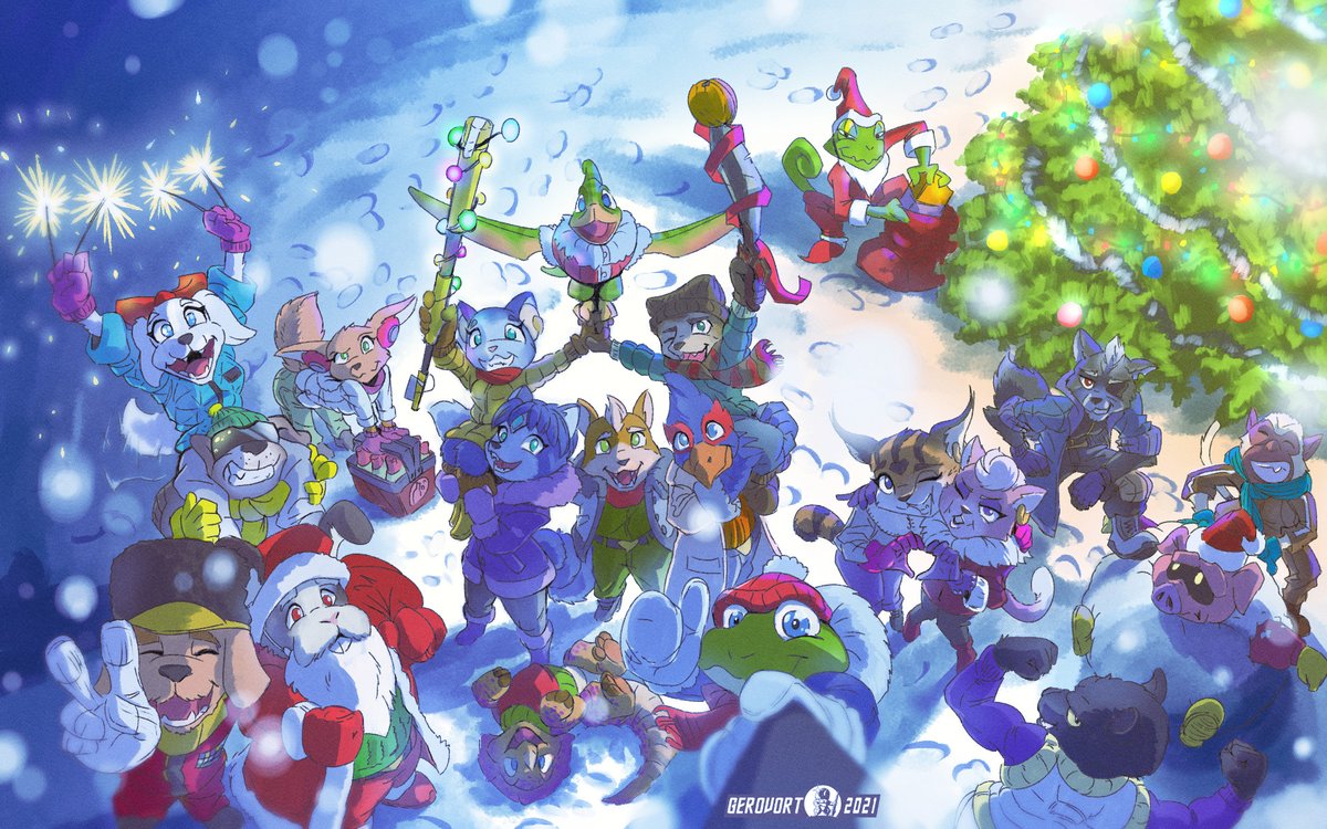 🎁🎀🥳I wish the entire Star Fox and Dinosaur Planet community a Merry Christmas and all the best in the New Year 2022! 🍪🥛😋🥂😀🎉 #Nintendo#illustration#holidayseason