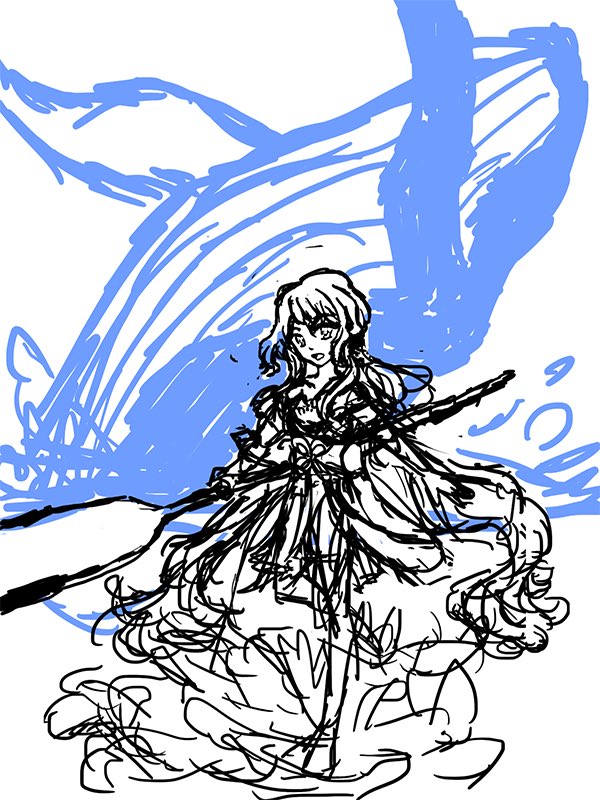 #このタグを見た人はラフ画とその完成絵を見せる 見たのでノってみた!!! 去年描いた夏っぽい絵を載せて、あたかも今描きました感を出す……!!