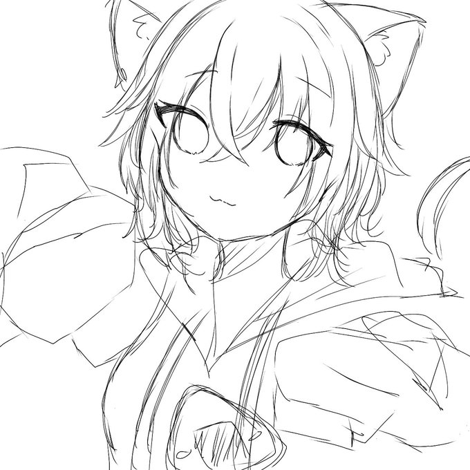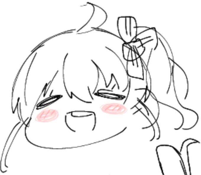 何も見ずに、手癖だけでおかゆんを描いた結果、下書きはこんな感じ😶 #絵かゆ