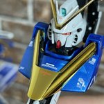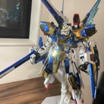 おはようございます✨ 最近、チタニウムのこいつにデカール貼ってトップコートをかましてました! 金メッキのツヤもそのまま残せたのですが、気泡と液垂れ発見💦 ヤスリとコンパウンドで消えるかな? #ガンプラ好きと繋がりたい #今月作ったプラモ晒そうぜ #ガンプラの画像貼るとRTされると聞いて