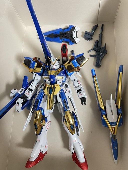 引っ越し後、初開封式!(安否確認) MGνのチタニウム無事でした! これもデカール全貼りでトップコートしたのでかなり頑張ったやつ #ガンプラ好きと繋がりたい #ガンプラの画像を貼るとRTされると聞いて #ガンプラ