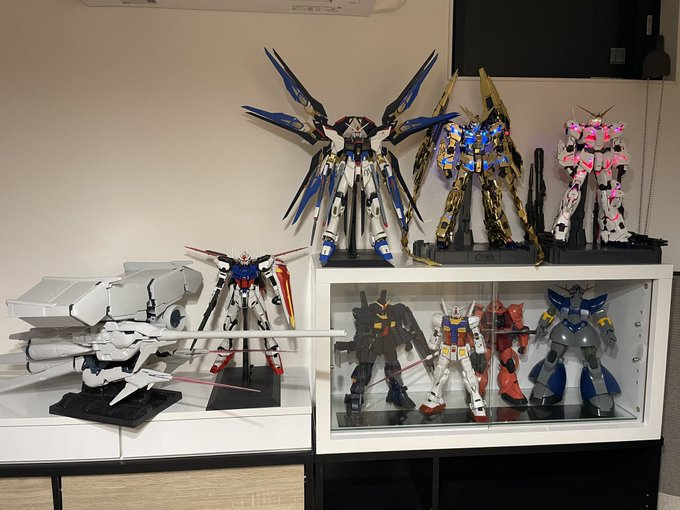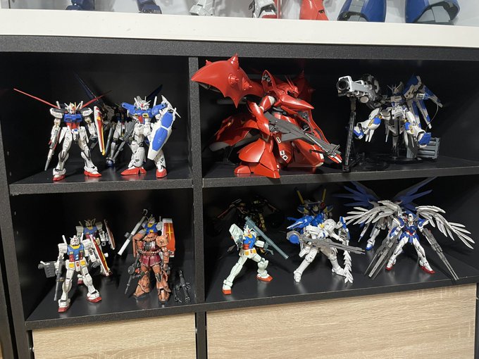 歴代作った1/144を並べてみました! 10年前に作ったRGシリーズの保持力が赤ちゃんぐらいしかありませんでした😇👶 #ガンプラ好きと繋がりたい #ガンプラ好きな人と繋がりたい #ガンプラの画像貼るとRTされると聞いて #ガンプラ