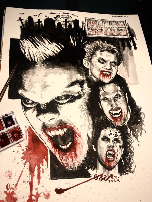 THE LOST BOYS 🦇 🦇 🦇 🦇 INKTOBER 5/31 #art #watercolor #painting #Inktober2019 #TheLostBoys #vampires #horrorfilm #classic