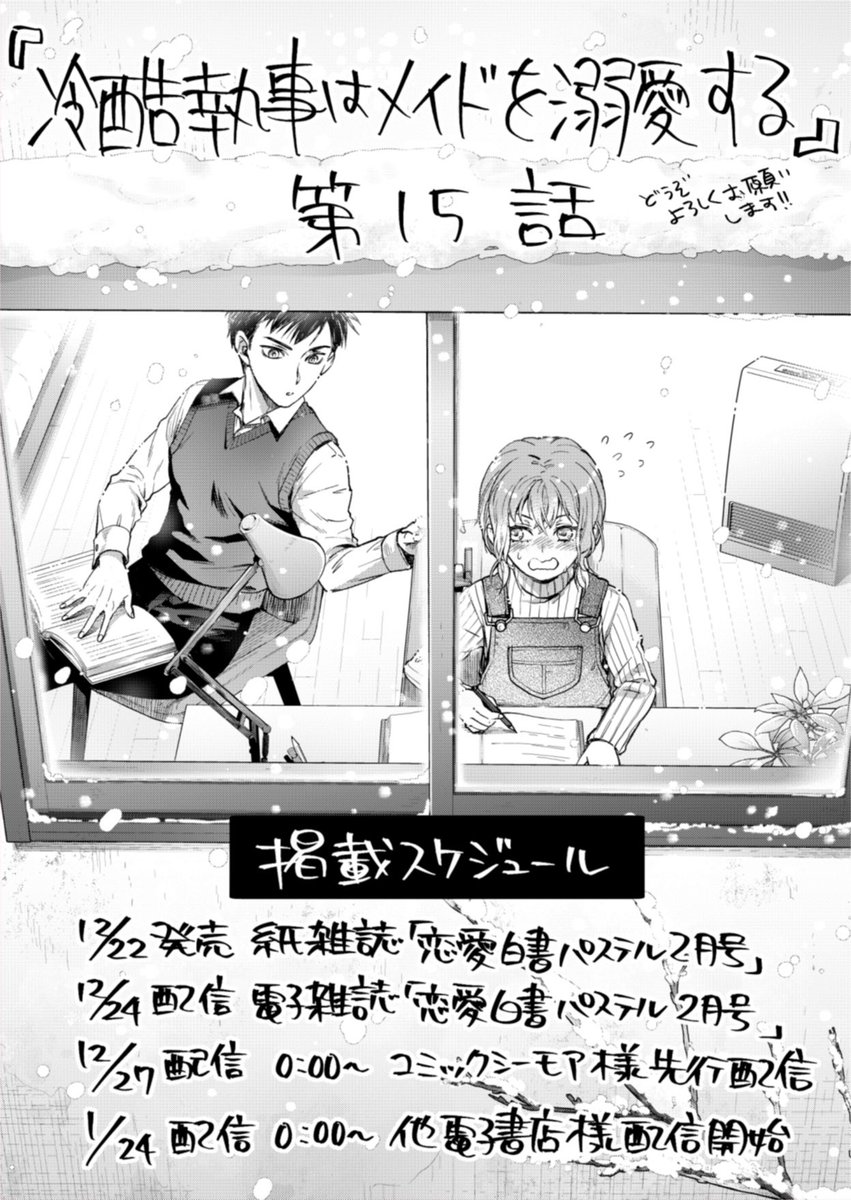 📣『#冷酷執事はメイドを溺愛する 15話』シーズン4❤️2話目 🟠12/22発売 紙雑誌 🟠12/24発売 電子雑誌 「恋愛白書パステル2月号」掲載 🔴12/27 0:00〜 単話配信 コミックシーモア様先行配信 🔴1/24 0:00〜 単話配信 他電子書店様配信開始 どうぞよろしくお願いします!!