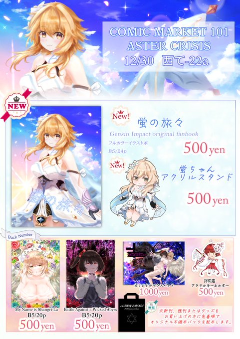 冬コミのお品書き出来ました❗ 12/30 西て-22a 『ASTER CRISIS』でお待ちしております🌟 前回のオリジナル本の改訂版も併せて持っていくのでよろしければこちらも是非❗よろしくお願いします❗ #C101お品書き