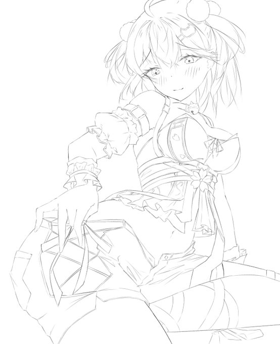 1 6 #マリンのお宝 线稿中😘 22/02/16 00:23