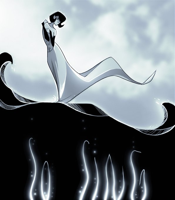 #Lyrictober 3/31: Zulirat is an ocean - with all its baiting mysteries and tempting depths. Zulya is receptive to the universal tunes, but she can't sing it back - like a siren who has lost her voice. 🎶Arcane Roots - Curtains #OC #Inktober #Inktober2019 #DigitalInktober #bait