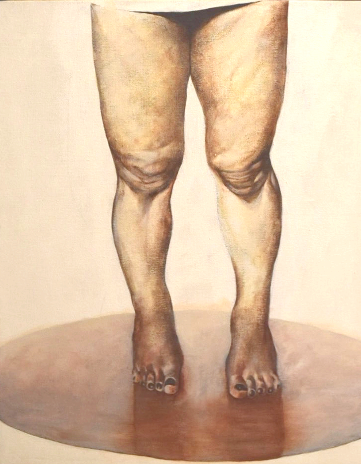 約10年前に描いた、約10年前のおかんの脚。おかんの脚なんて、まじまじとみることなかったけど、生々しいな、と思った記憶がある。 #イラスト好きな人と繋がりたい #絵描きさんと繋がりたい #アナログ #油画