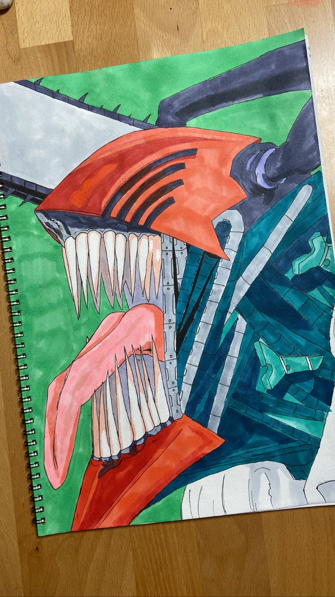 「チェンソー」 デンジ・ポチタ #模写 #模写イラスト #イラスト #イラスト好きと繋がりたい #コピック #コピックイラスト #チェンソーマン #デンジ #chainsawman #denji #illustraion