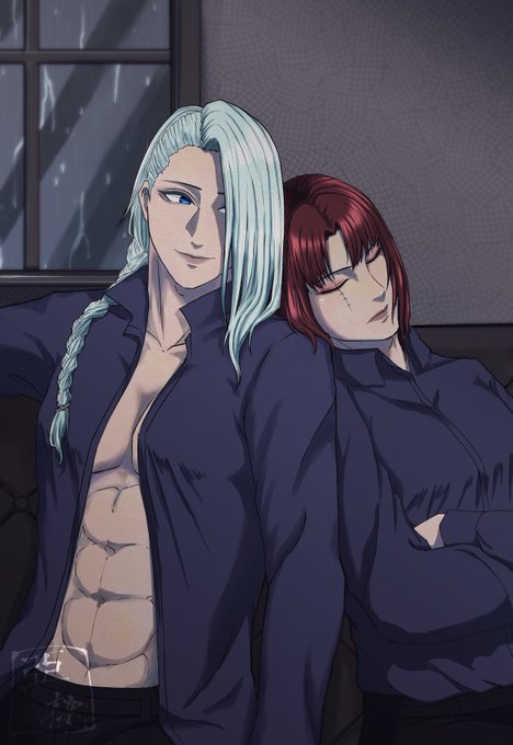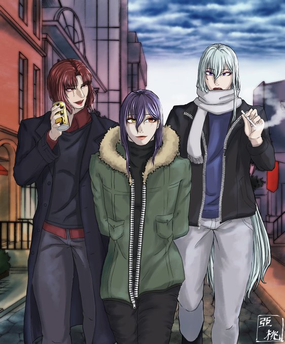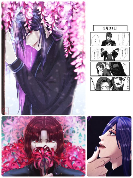 #亞桃のCriminalsRequiem 言霊家の双子 兄の紫影と弟の紫龍 育った環境の影響で紫影の方が少し身長低くて華奢だったりします☺️☺️ これで今5枚落書きと2枚背景無し絵を書いたことに…します!!