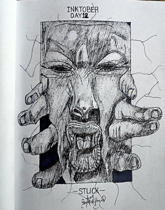 INKTOBER 2021 DAY 12: STUCK "STUCK IN A WALL" #inktober #inktober2021 #inktoberday12 #inktoberchallenge2021 #inktoberchallenge #inktober2021day12stuck #Inktober2021day12