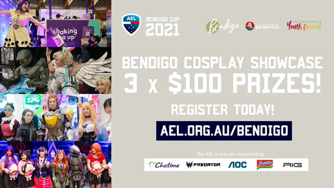 📢Calling all Victorian and Bendigo cosplayers📢 Show us your cosplay in the @GreaterBendigo Cosplay Showcase! There are 3 x $100 prizes up for grabs! Register at ael.org.au/bendigo by 12:00pm AEDT 9th Dec! Winners will be selected by live viewer vote! #cosplay #bendigo