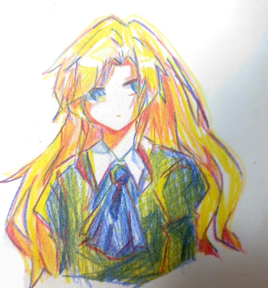 #コンパスイラスト #コンパスお絵描き リリカちゃんを色鉛筆三本で 書いてみました🟥🟦🟨