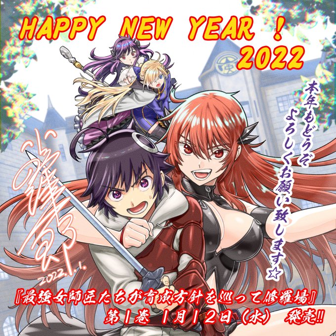 16 48 遅くなりましたが #あけましておめでとうございます🎍 2022年も粛々と暴れていきますので何卒よろしくです⭐️ 加えて、12日には第1巻 発売! …て事は例のいつもの企画、やるのか?やれるのか⁉︎自分!🥶 待て続報‼️笑 #最強女師匠 #マンガワン #赤城大空 #タジマ粒子 #小野洋一郎 #年賀イラスト 22/01/01 21:24